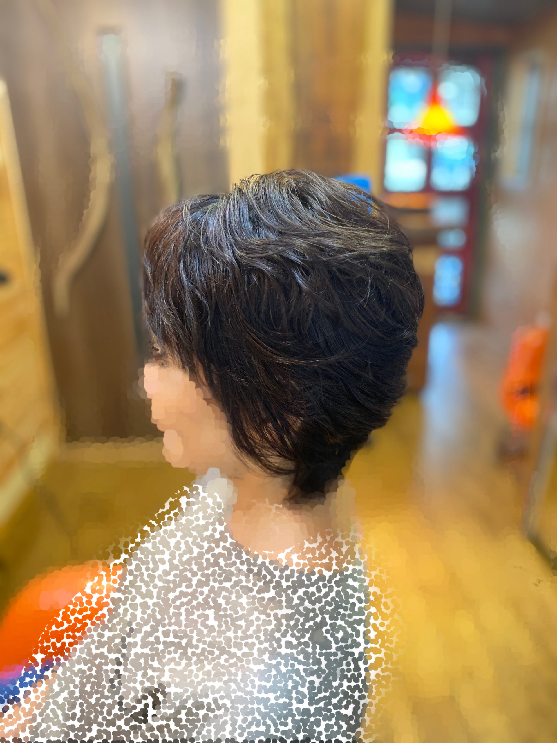 部分的に、パーマをかけて下に落ちてきがちな髪をバランスよく持ち上げました。ご自分の癖も少しあり、エアリーな感じが素敵です。 I permed her top of hair. It’s makes her comfortable and looks nice.